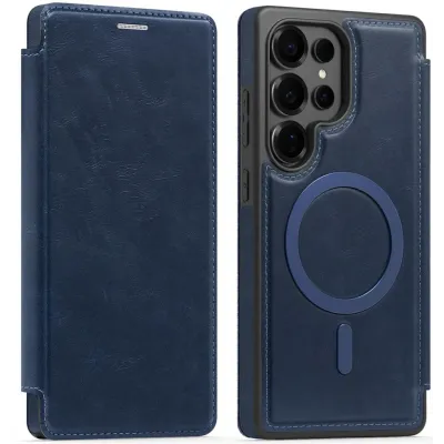 Coque portefeuille Phonesta Luxury Leather avec MagSafe pour Samsung Galaxy S25 Ultra - Bleu foncé