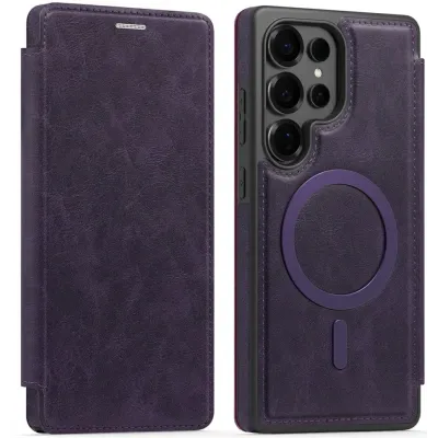 Coque portefeuille Phonesta Luxury Leather avec MagSafe pour Samsung Galaxy S25 Ultra - Violet foncé