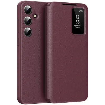 Coque portefeuille Phonesta Smart Window pour Samsung Galaxy S24 FE - Bordeaux