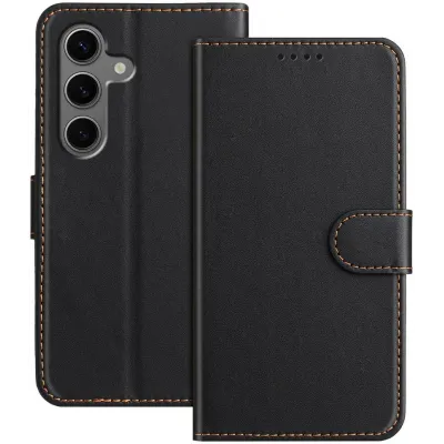 Coque portefeuille Phonesta Leather Vertical Flip pour Samsung Galaxy S25 Plus/S24 Plus - Noir