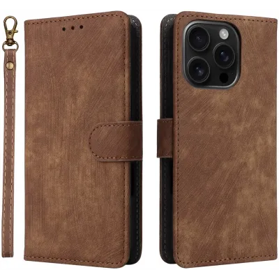 • Coque portefeuille Phonesta Vintage Skin pour Apple iPhone 16 Pro Max - Marron