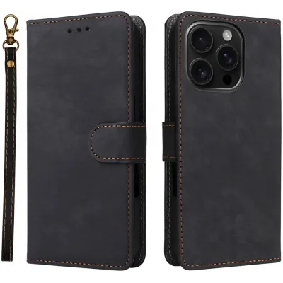 Coque portefeuille Phonesta Soft Skin pour Apple iPhone 16 Pro - Noir