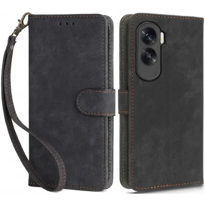 • Coque portefeuille Phonesta Vintage Skin pour HONOR 90 Lite - Noir