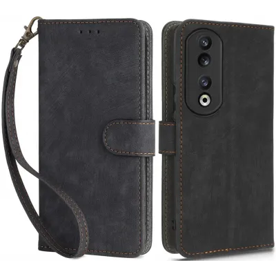 Coque portefeuille Phonesta Vintage Skin pour HONOR 90 - Noir