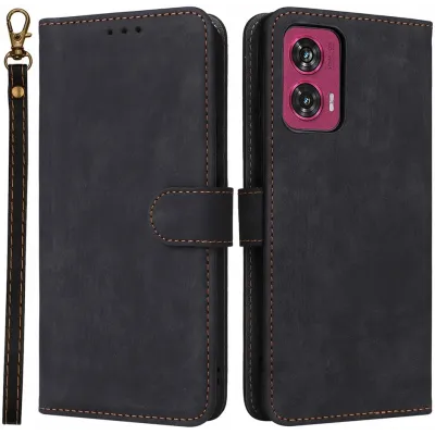 • Coque portefeuille Phonesta Vintage Skin pour Motorola Edge 50 Fusion - Noir