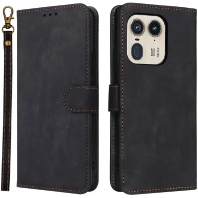 Coque portefeuille Phonesta Vintage Skin pour Motorola Edge 50 Ultra - Noir