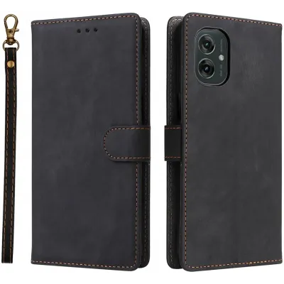 Coque portefeuille Phonesta Leather Vertical Flip pour Motorola Moto G55 - Noir