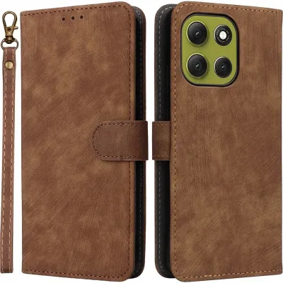 • Coque portefeuille Phonesta Vintage Skin pour Motorola Moto G86 - Marron