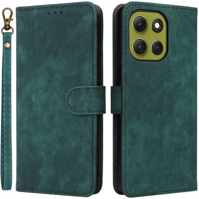 La coque portefeuille Phonesta Vintage Skin Book est un étui élégant et pratique pour votre Motorola Moto G86. Cette coque est fabriquée en cuir polyuréthane (PU) de haute qualité et en polyuréthane thermoplastique (TPU), offrant une prise en main confortable et une longue durée de vie. La couleur vert donne à la coque une apparence élégante, parfaite pour une utilisation quotidienne comme pour des occasions spéciales. Avec sa fermeture magnétique, tout reste bien sécurisé, tandis que le cordon inclus permet de garder votre téléphone à portée de main.