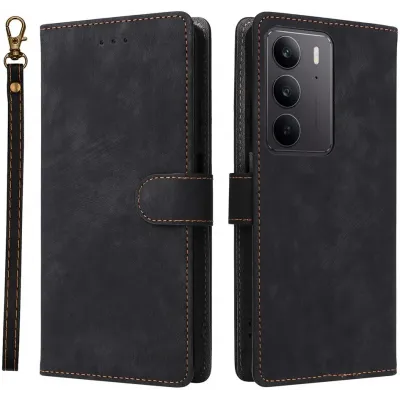 Coque portefeuille Phonesta Vintage Skin pour Realme 14x / C75 - Noir