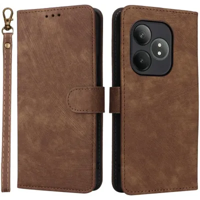 • Coque portefeuille Phonesta Vintage Skin pour Realme GT 6 - Marron