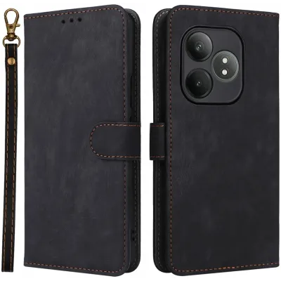 Coque portefeuille Phonesta Vintage Skin pour Realme GT 6 - Noir
