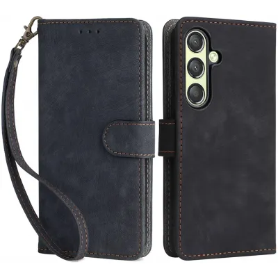 Coque portefeuille Phonesta Vintage Skin pour Samsung Galaxy S24 - Noir