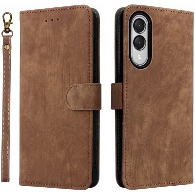 • Coque portefeuille Phonesta Vintage Skin pour Samsung Galaxy S25 Edge - Marron