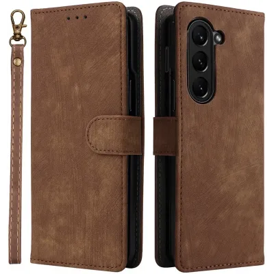 • Coque portefeuille Phonesta Vintage Skin pour Samsung Galaxy Z Fold 6 - Marron