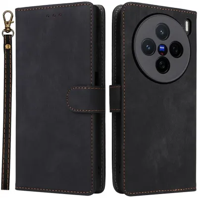 Coque portefeuille Phonesta Vintage Skin pour Vivo X200 - Noir