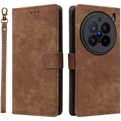 • Coque portefeuille Phonesta Vintage Skin pour Vivo X200 Pro - Marron