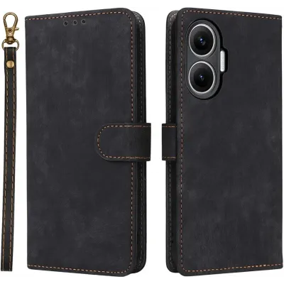 • Coque portefeuille Phonesta Vintage Skin pour Xiaomi Poco F7 - Noir