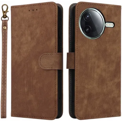 • Coque portefeuille Phonesta Vintage Skin pour Xiaomi Poco F7 Pro/F7 Ultra - Marron